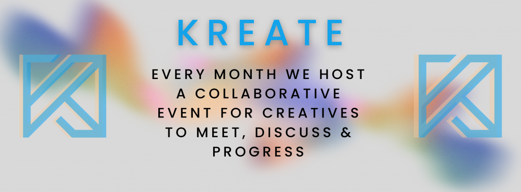 Every month we host a collaborative event for all creatives to attend, utilise the facilities and meet likeminded people. If you would like to attend the next Kreate Event, receive product discounts and collaborate with local talent, book your ticket below…